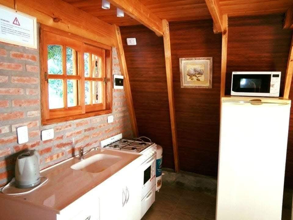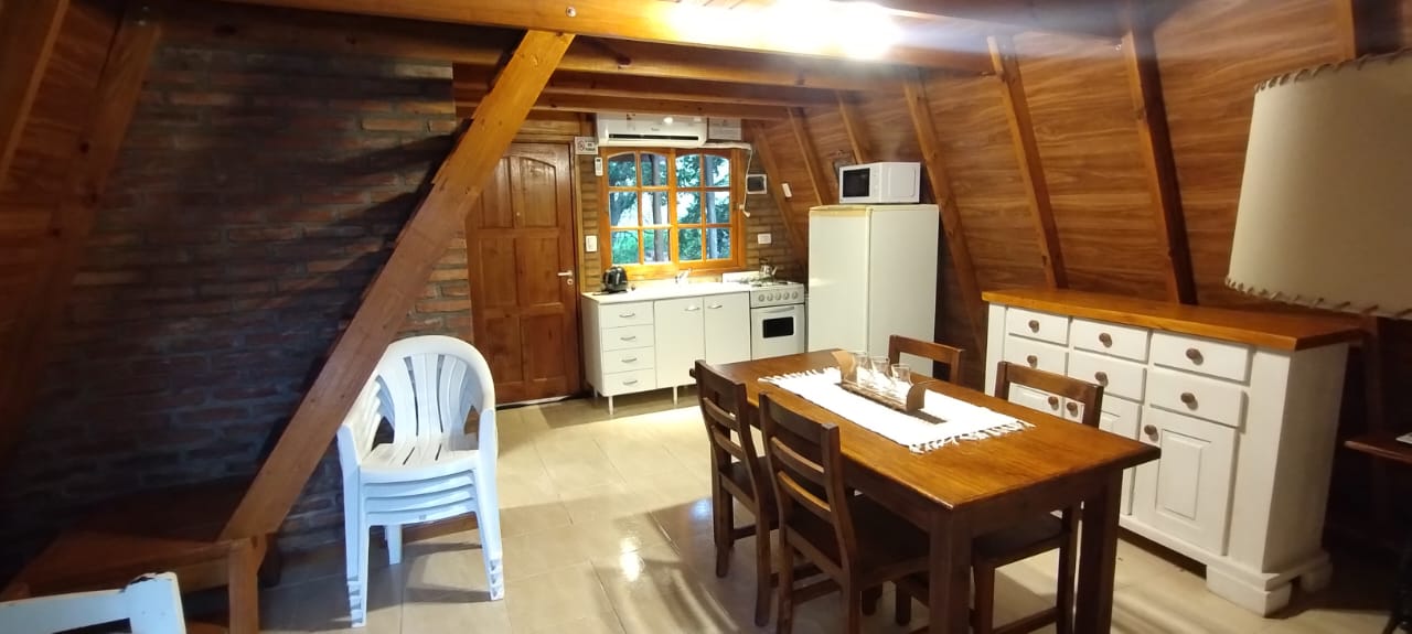 Cabaña alpina en alquiler en balneario sauce grande, preparada para 4/5 personas, en excelente estado, de dos dormitorios, living comedor, estacionamiento, semi cubierto con parrilla y equipada con aire acondicionado, tv cable, wifi y microondas.