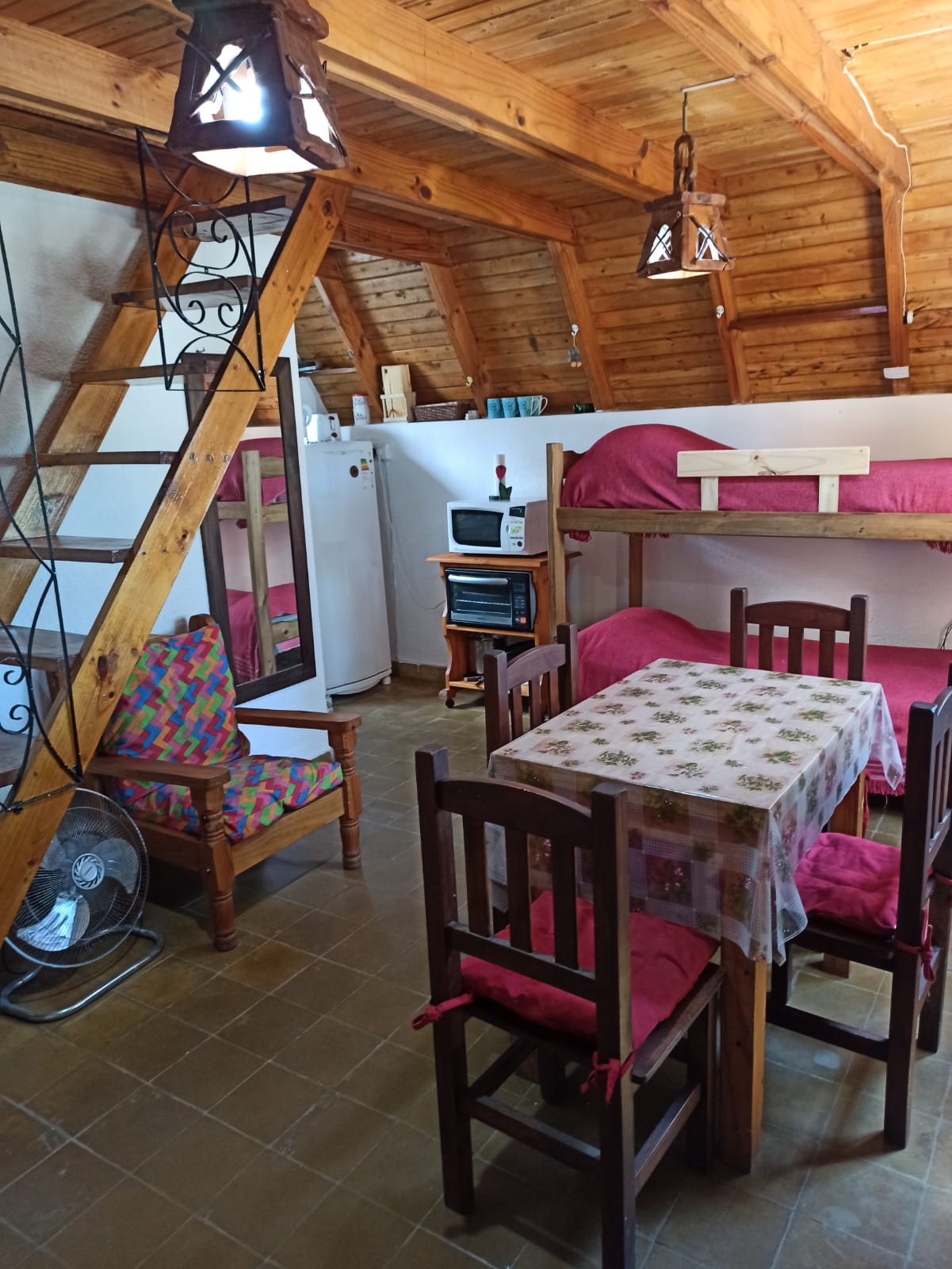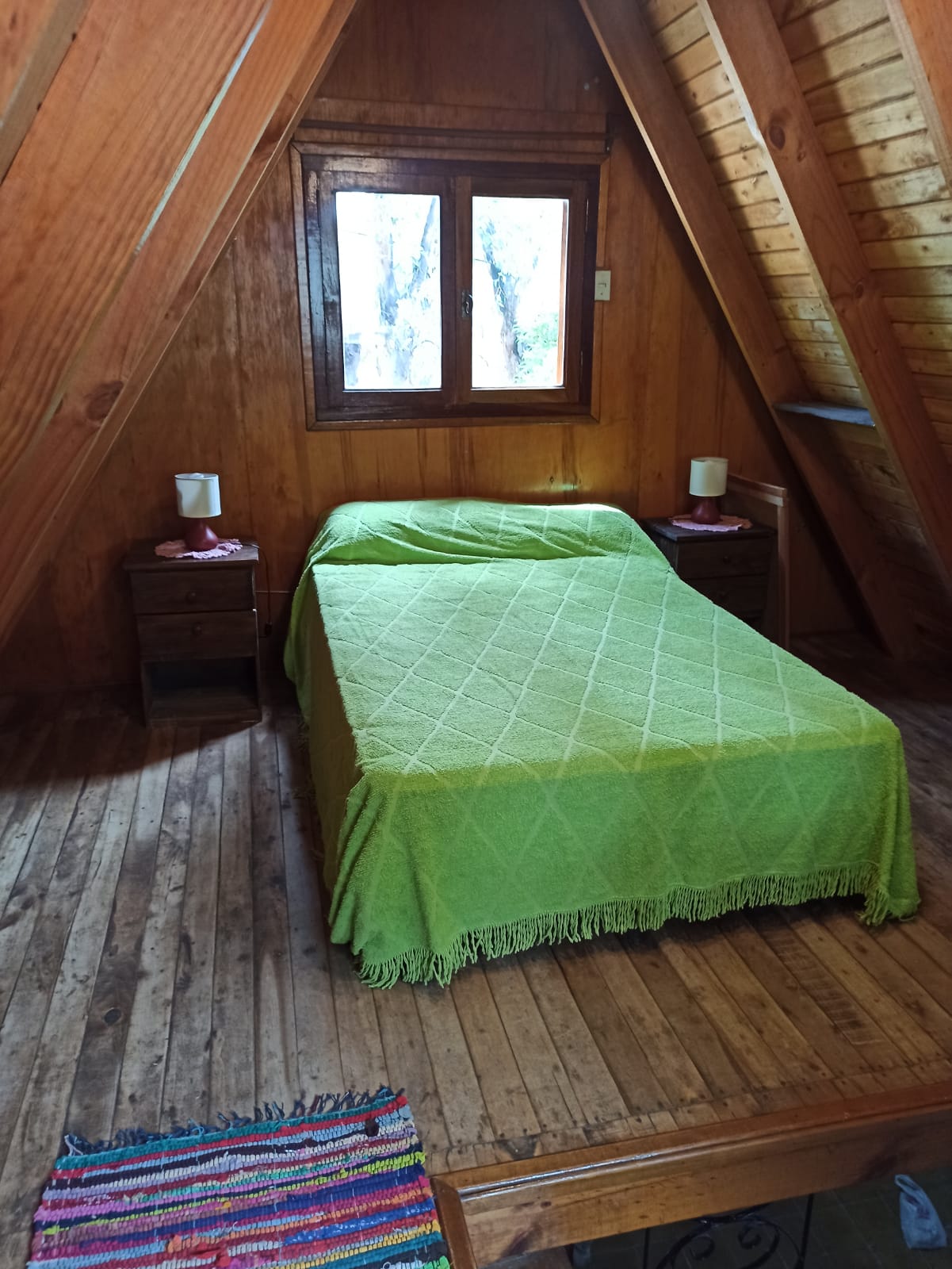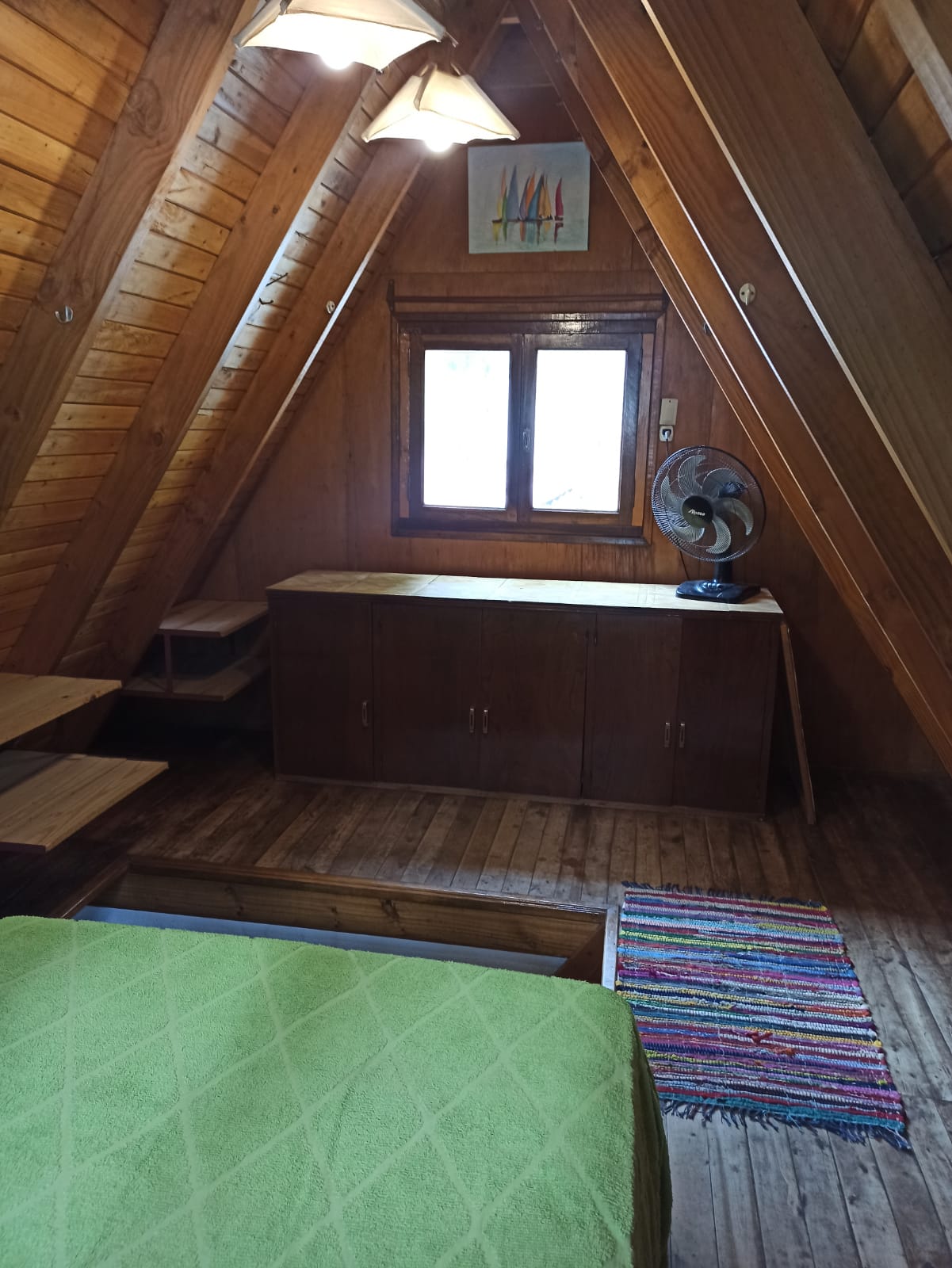 Cabaña preparada para hasta 4 personas, de 1 dormitorio en planta alta, ubicada en Puleston y Oceano, zona muy tranquila y arbolada, equipada con estacionamiento descubierto, parrilla, tv cable, wifi, microondas y horno electrico.
