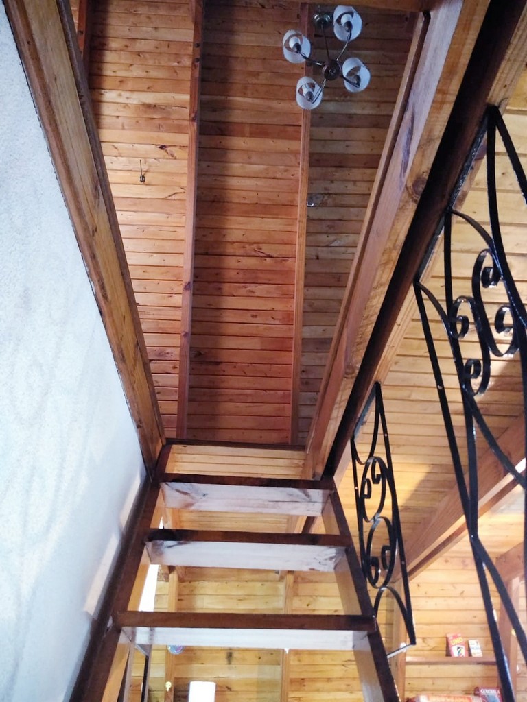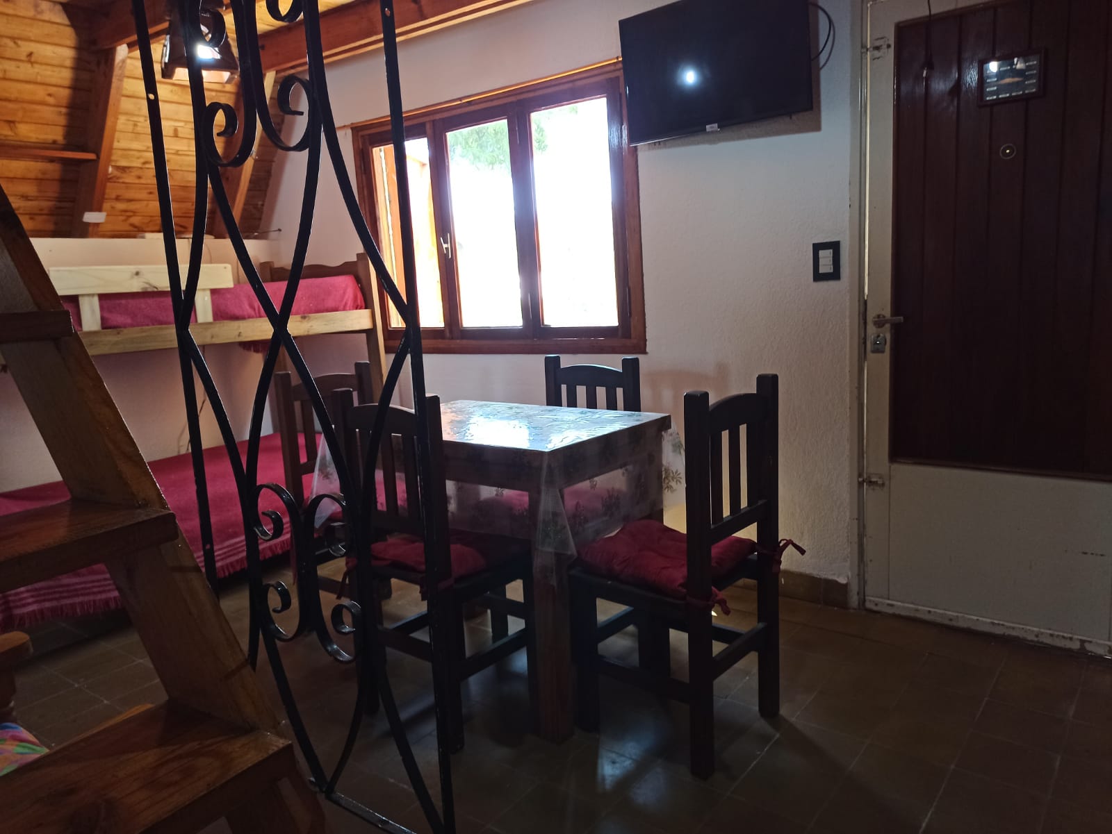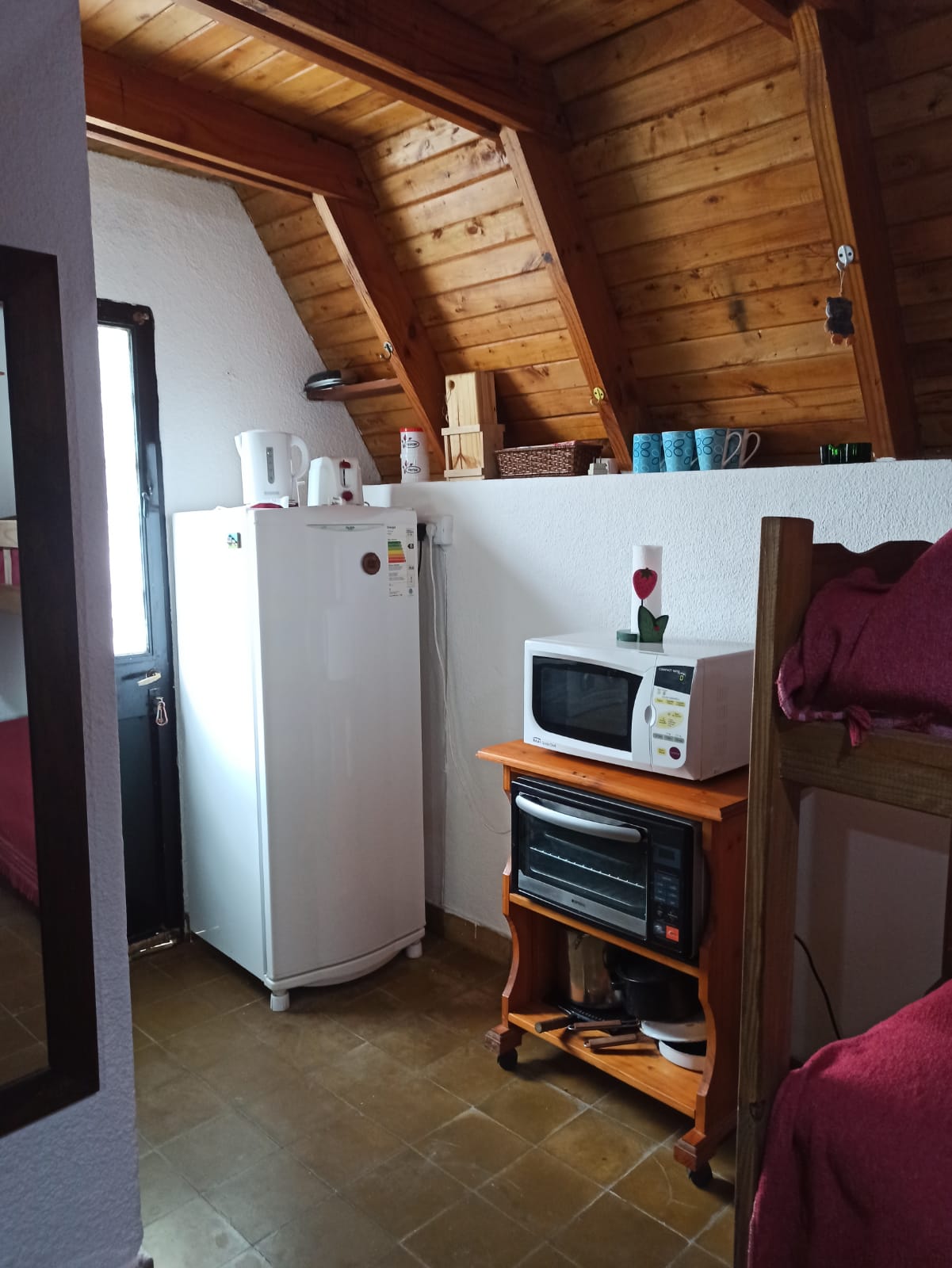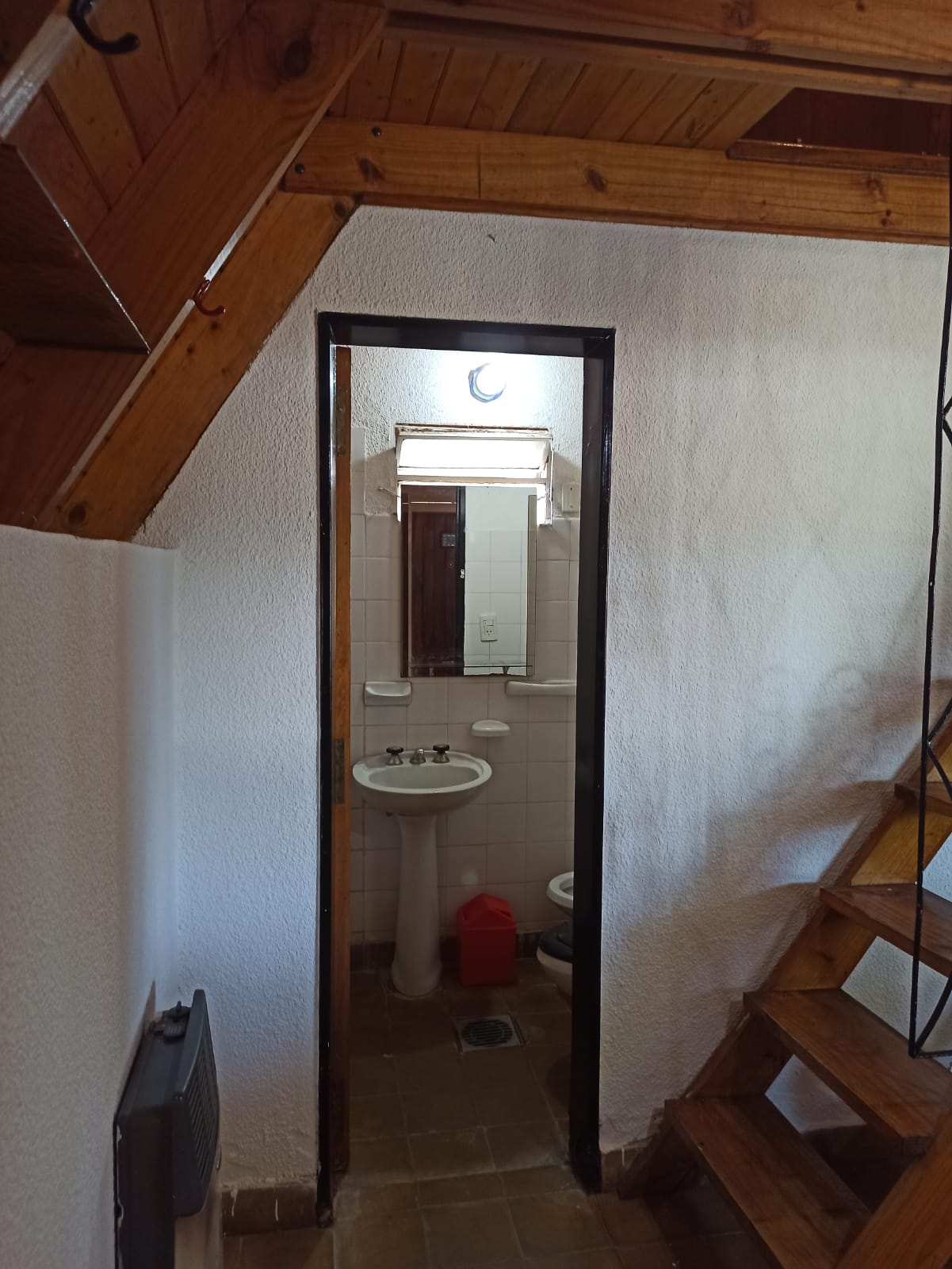 Cabaña preparada para hasta 4 personas, de 1 dormitorio en planta alta, ubicada en Puleston y Oceano, zona muy tranquila y arbolada, equipada con estacionamiento descubierto, parrilla, tv cable, wifi, microondas y horno electrico.