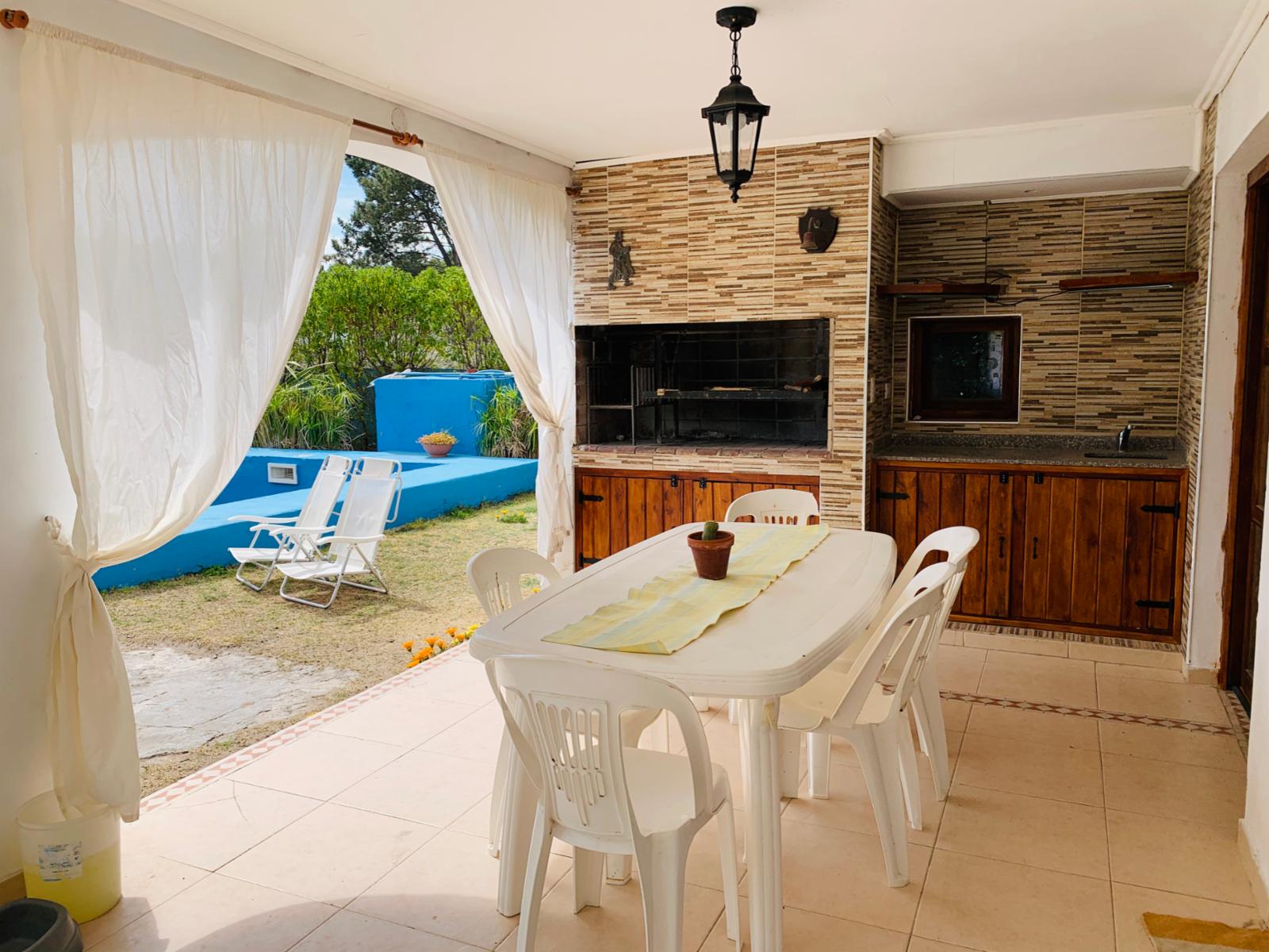 Amplia casa de tres dormitorios y tres baños, cocina comedor, living comedor, lavadero, quincho semi cubierto y piscina, muy bien equipada, estacionamiento para mas de un vehiculo, ubicada en calle Los Fresnos 498 del B° residencial Monte Hermoso del este y preparada para 7/8 personas.