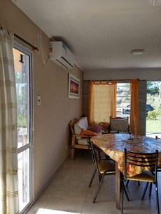 Casa en alquiler en balneario Sauce Grande, con pileta, de dos dormitorios, cuenta con estacionamiento cubierto, parrilla, tv cable, aire acondiconado, heladera con freezer y wifi, preparada para hasta 5 personas.