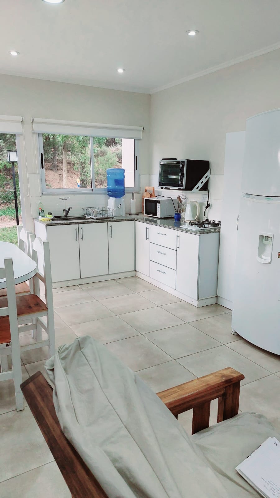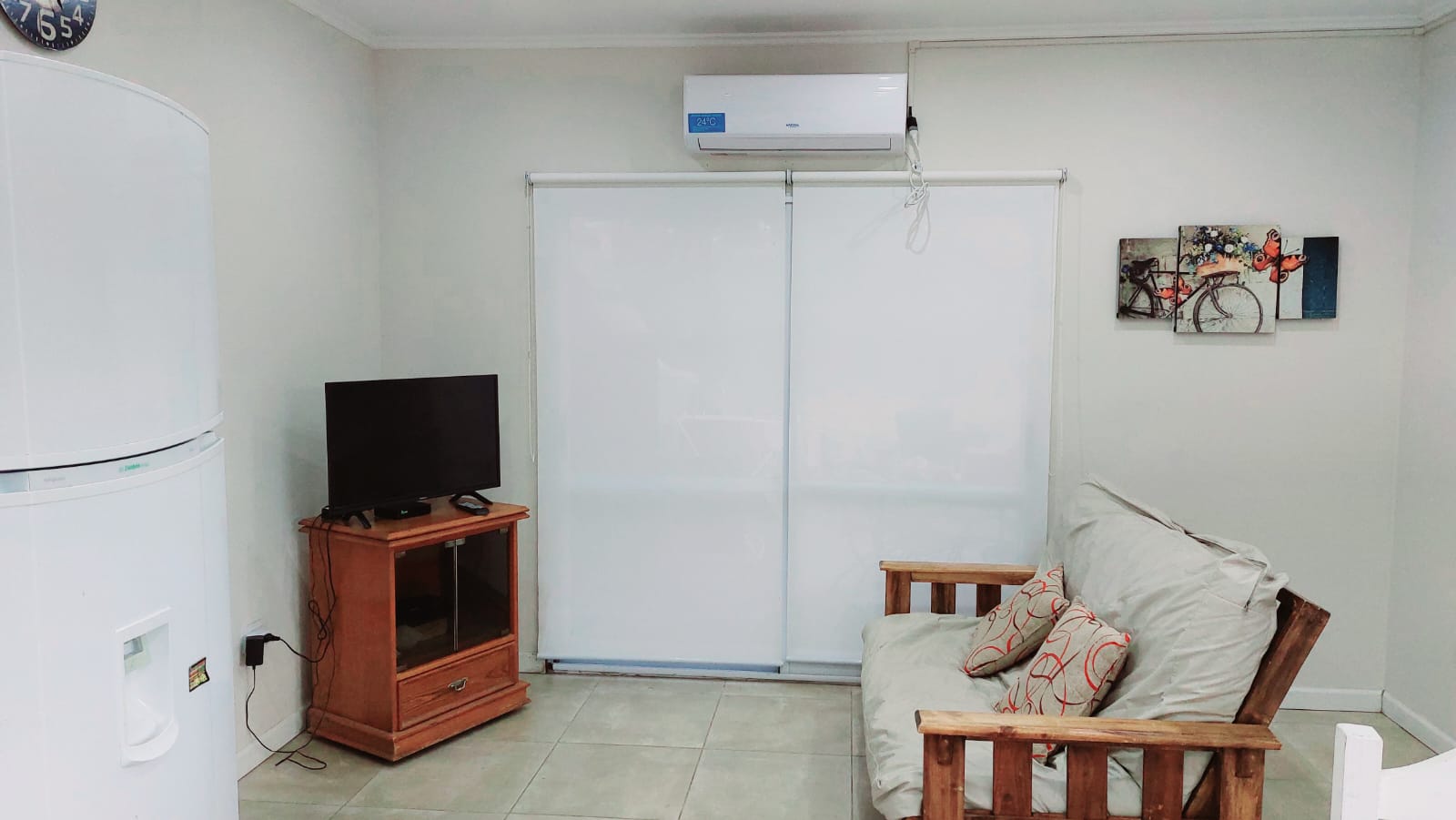 Casa en alquiler en balneario Sauce Grande, a 10 minutos de Monte Hermoso, preparada para 5 personas, de dos dormitorios y un baño, equipada con aire acondicionado, heladera con freezer, wifi, tv cable, lavarropas, parrilla, alarma y microondas, no apta mascotas.