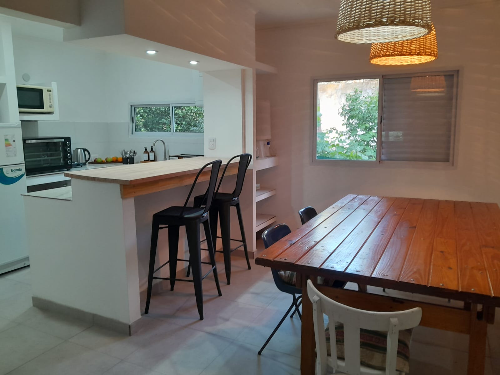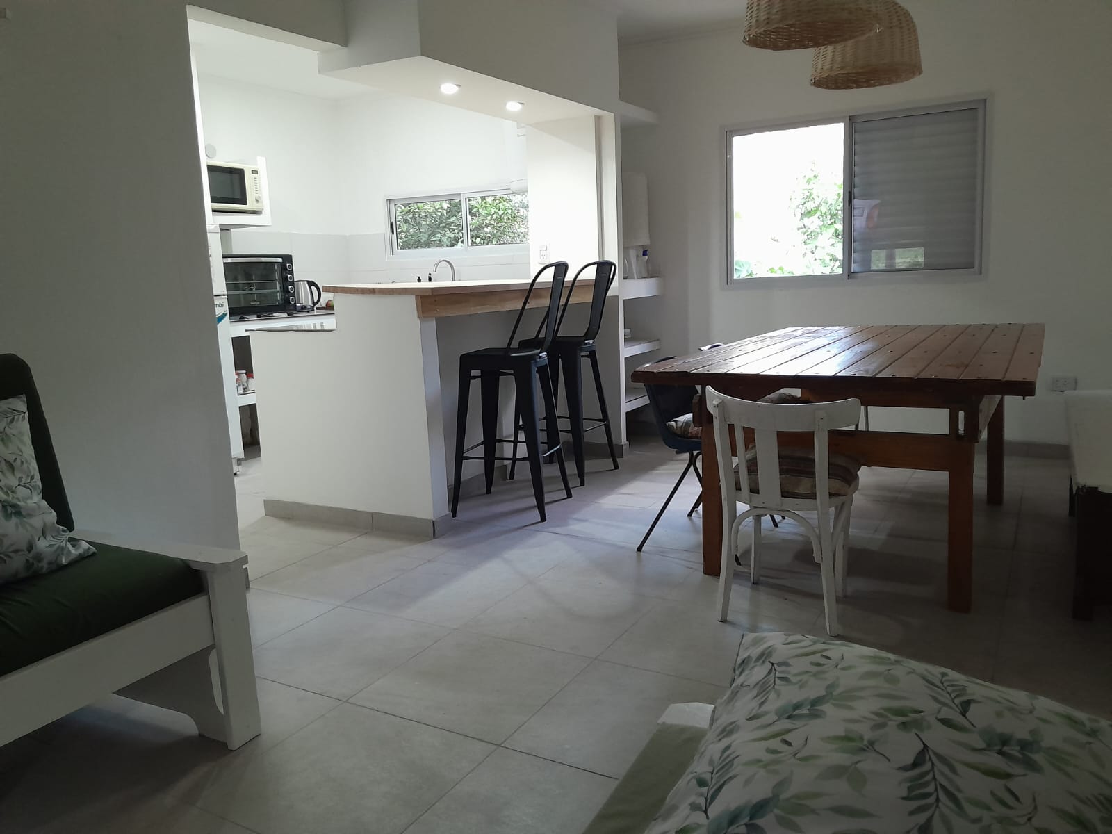 Casa en alquiler en sauce grande, a dos cuadras del mar, de tres dormitorios y preparada para 6 personas, cuenta con dos dormitorios con camas matrimoniales, aire acondicionado, ventiladores, wifi, microondas, tv cable, heladera con freezer y parrilla.
