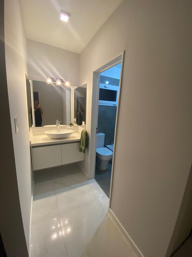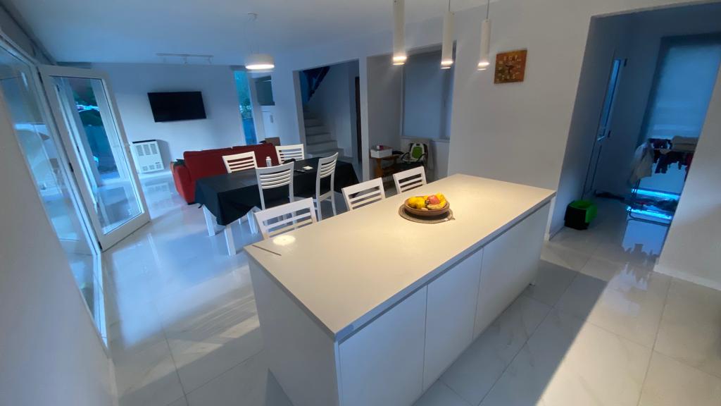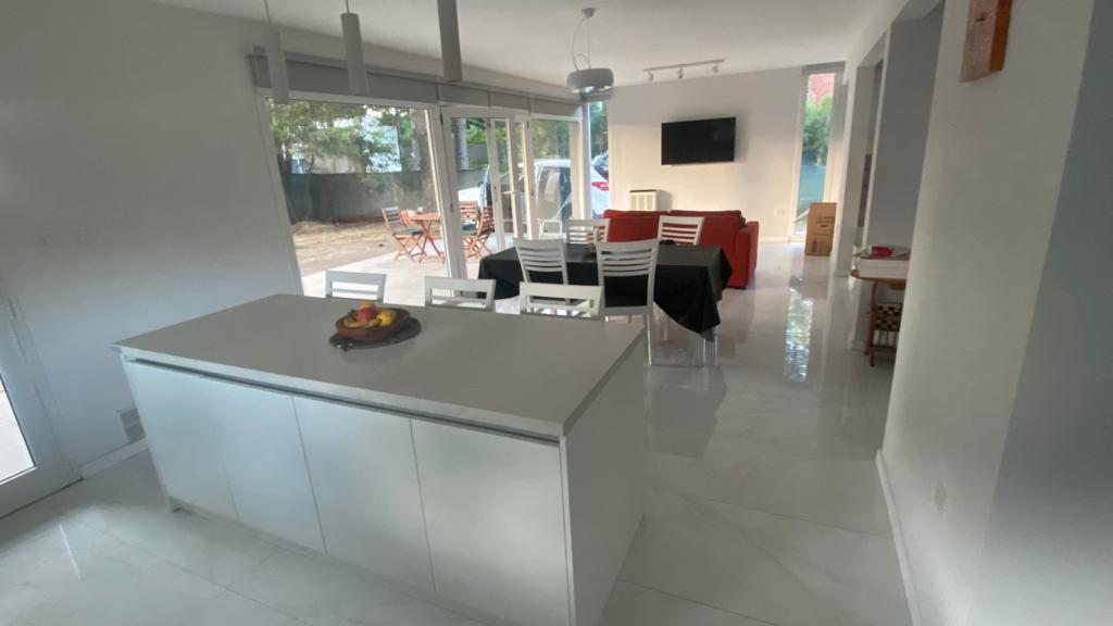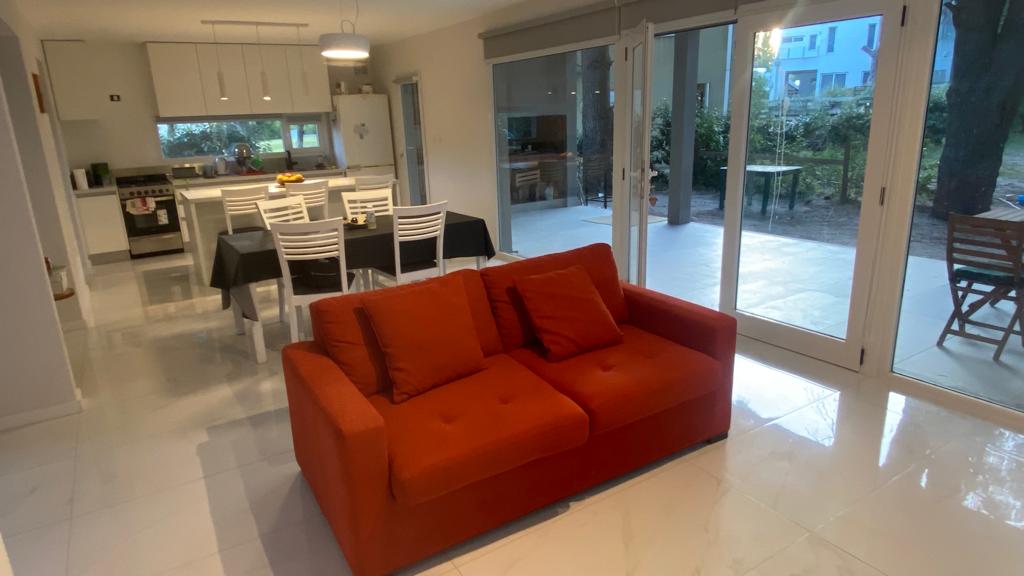 Amplia casa en b° residencial Monte Hermoso del este , de tres dormitorios, para 7 personas (con opcion a 4 personas mas), dos baños, estacionamiento descubierto, amplio quincho semi cubierto, jardin arbolado, muy bien equipada y en excelente estado.
