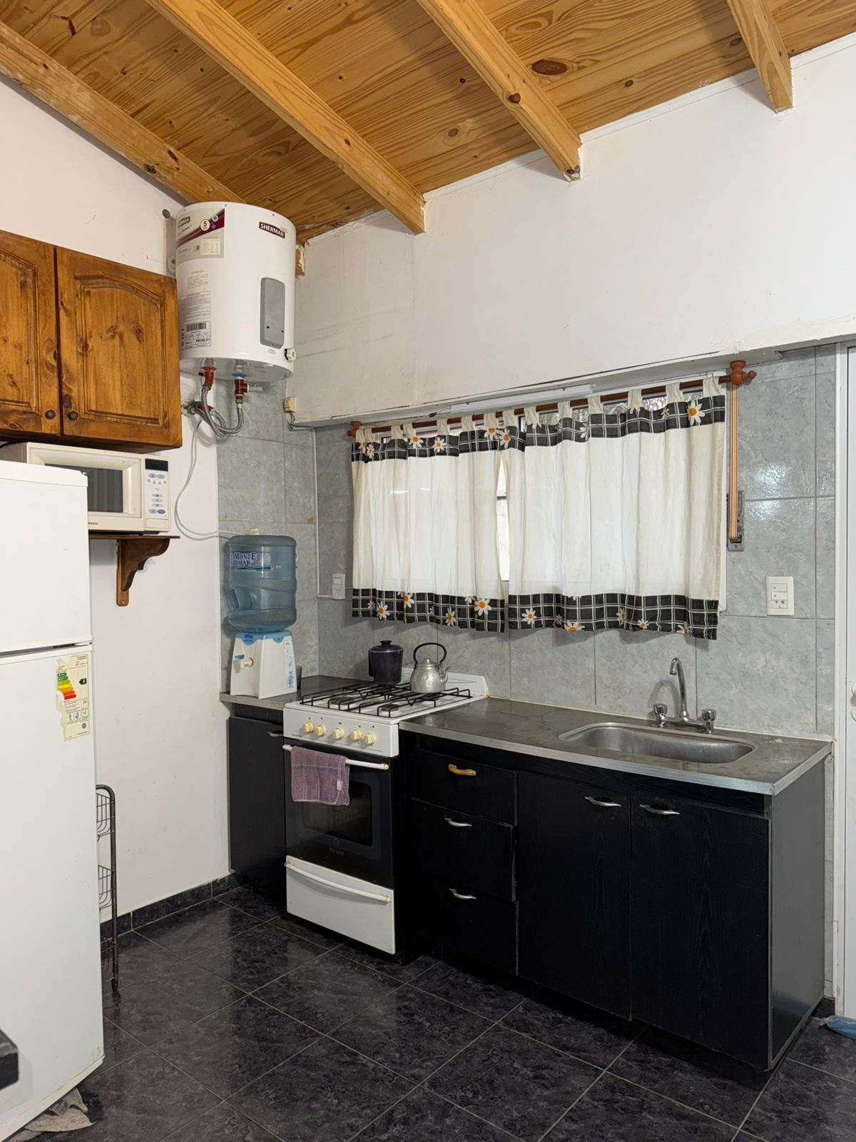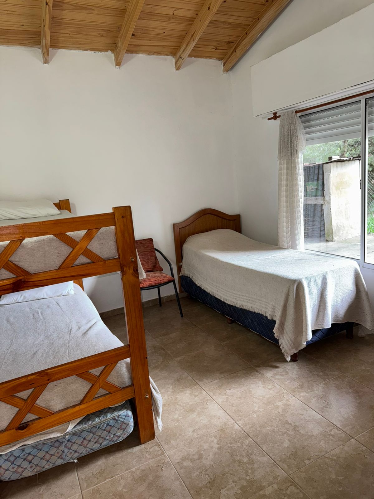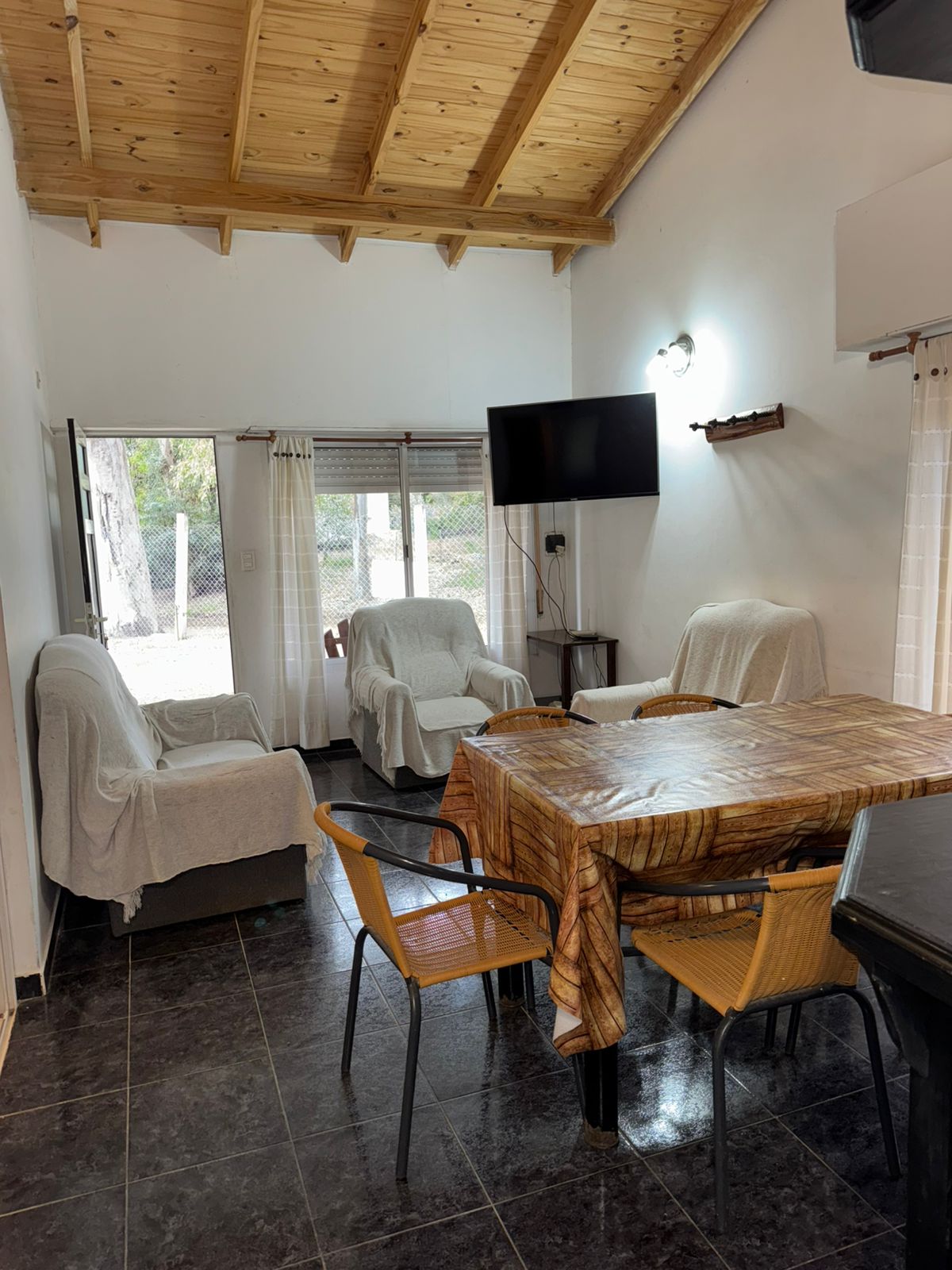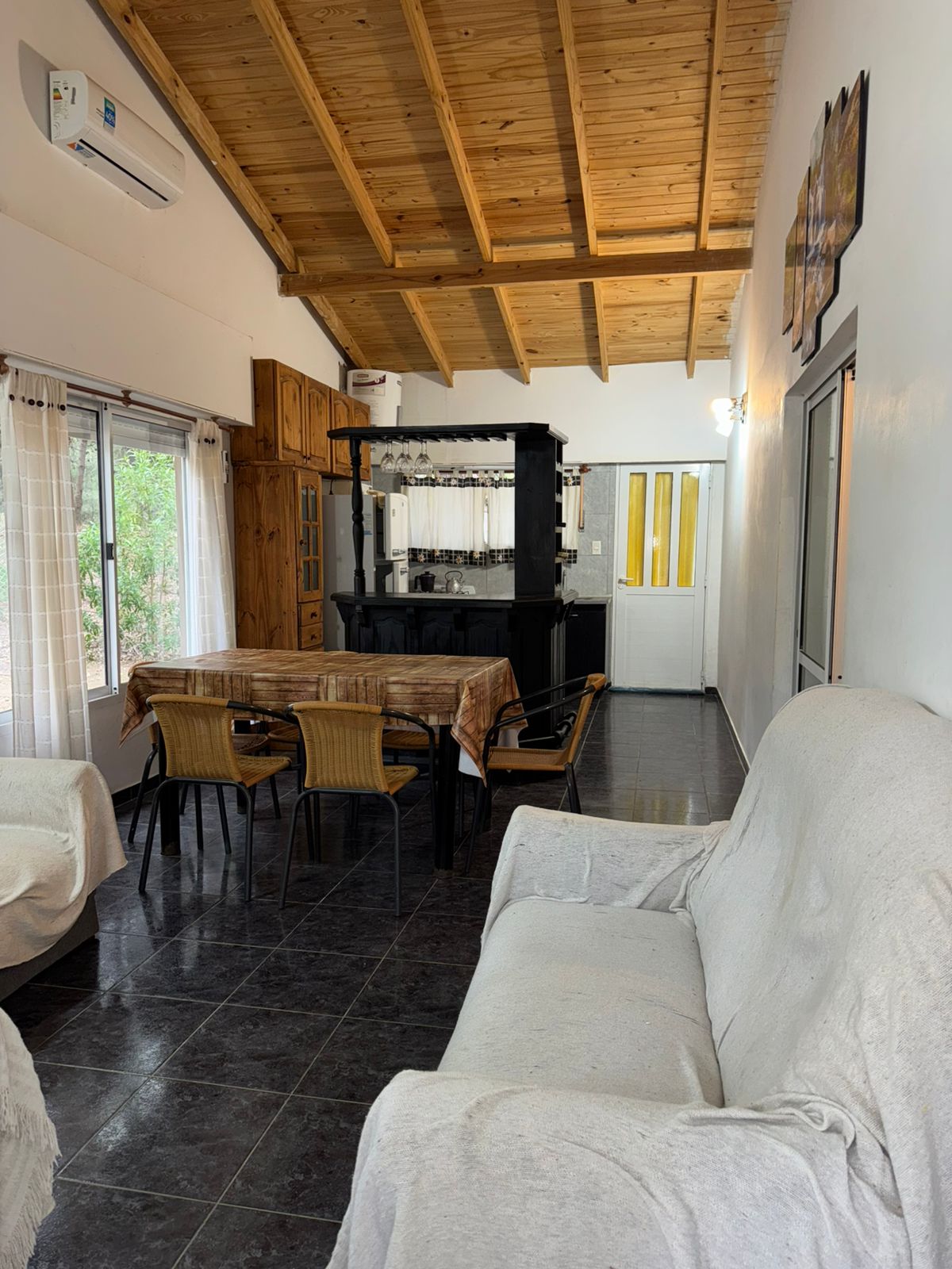 Comoda casa en alquiler en sauce grande, en la mejor zona arbolada del balneario, de dos dormitorios, living comedor, preparada para 5 personas y euqipada con aire acondicionado, wifi, tv cable, heladera con freezer y microondas, terreno en esquina cercado, estacionamiento cubierto y parrilla.