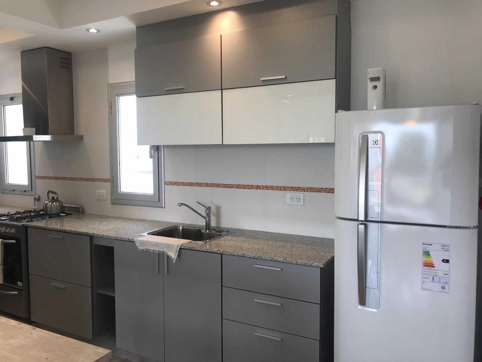 Departamento en Aldea del este de dos dormitorios y dos baños, balcon con parrilla, estacionamiento descubierto, muy bien equipado y en excelente estado.