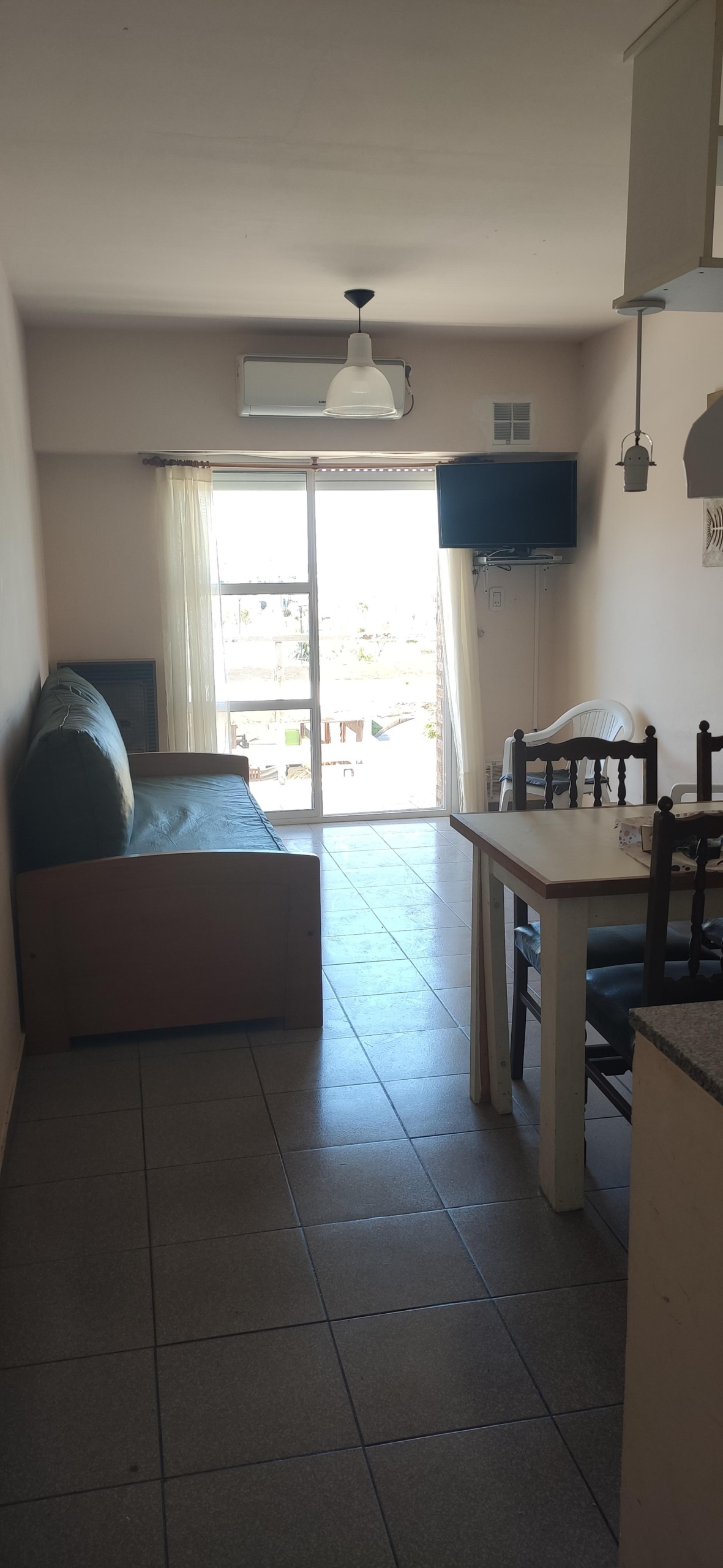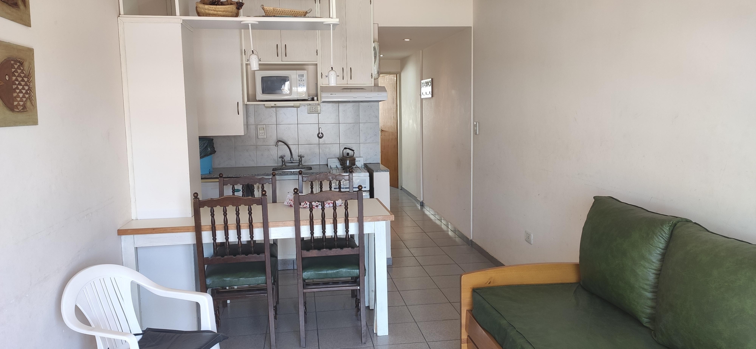 Departamento con vista al mar, frente a la rambla, de un dormitorio, con cochera cubierta, aire acondicionado, tv cable y wifi, preparado hasta para 4 personas.