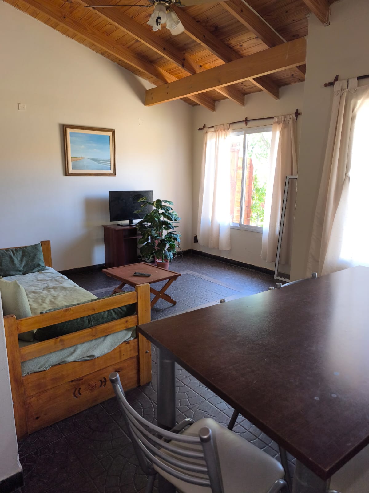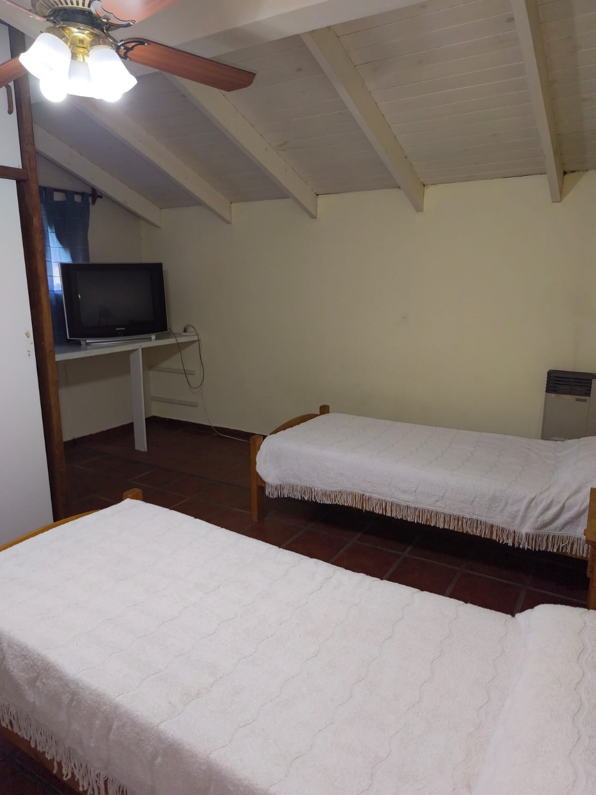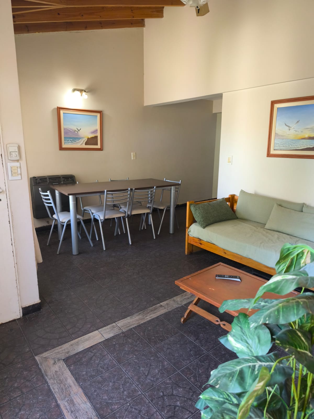 Duplex de dos dormitorios para hasta 6 personas, a media cuadra del casino, planta baja con living comedor, cocina y un baño, patio cerrado con parrilla, estacionamiento cerrado para dos autos y equipada con airea acondicionado, tv cable en living y dormitorio, wifi, heladera con freezer y microondas.