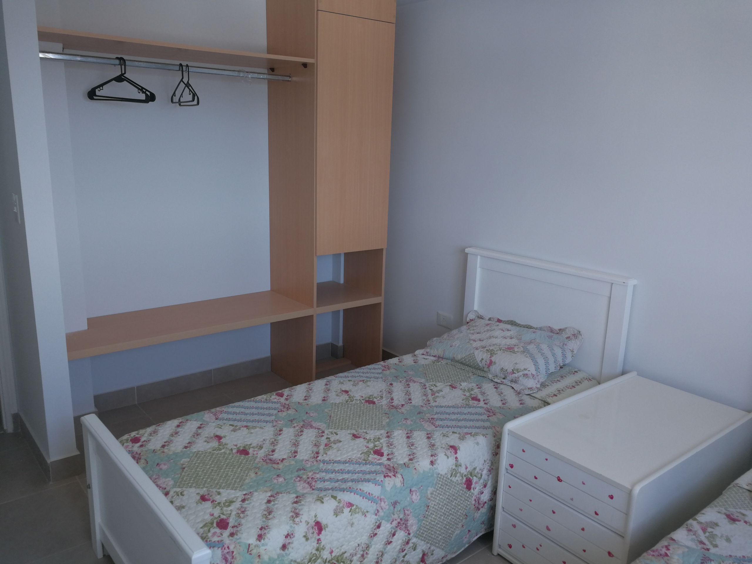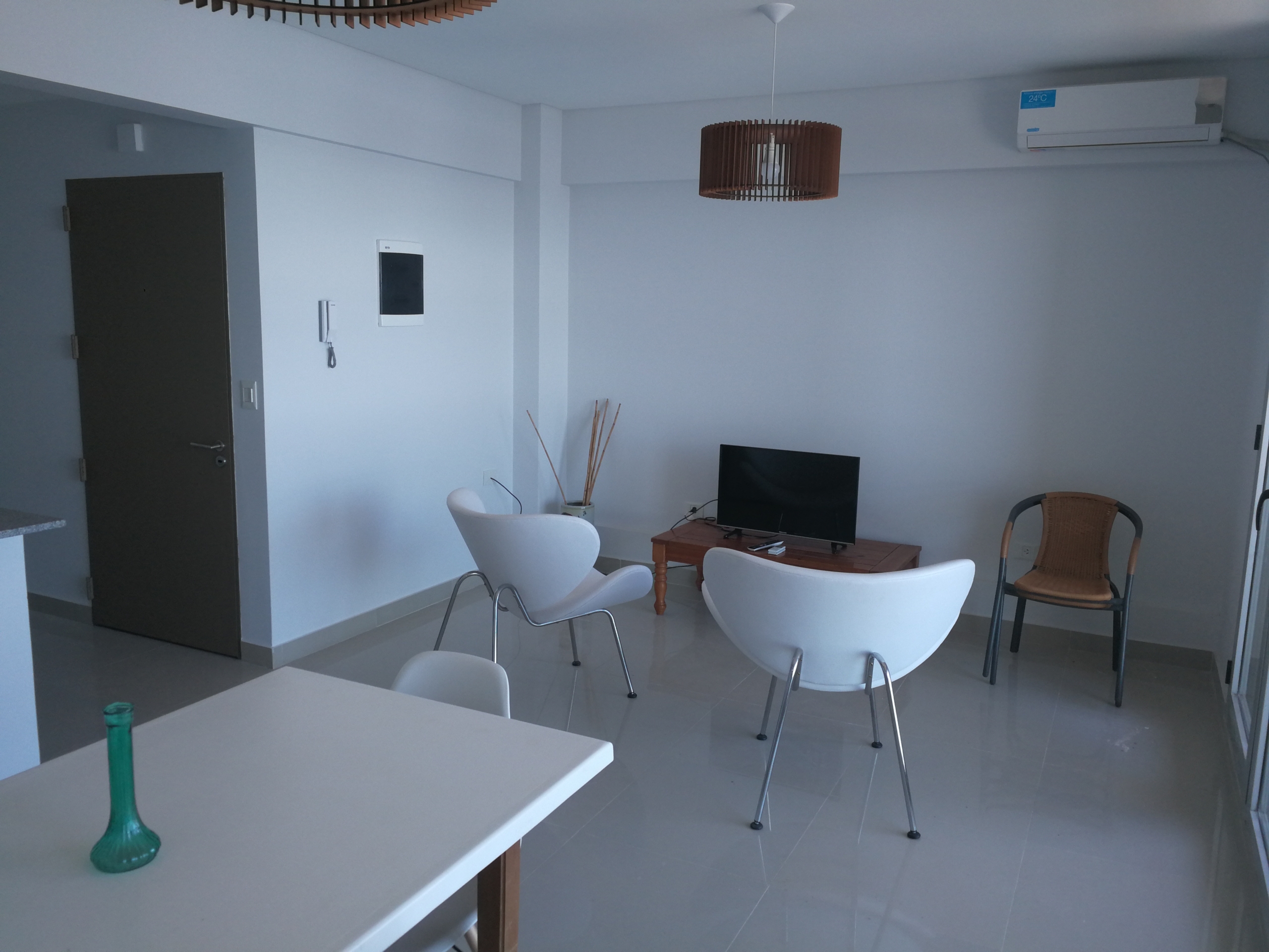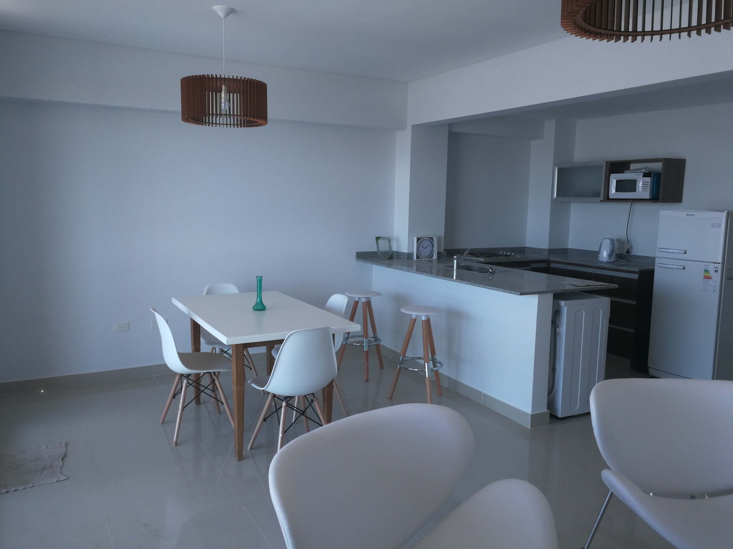 Departamento de dos dormitorios, dos baños completos, para 4 personas, balcon al mar con parrilla, cochera, A/A, wi-fi, lavarropas automatico, tv cable, micrrondas y heladera con freezer.